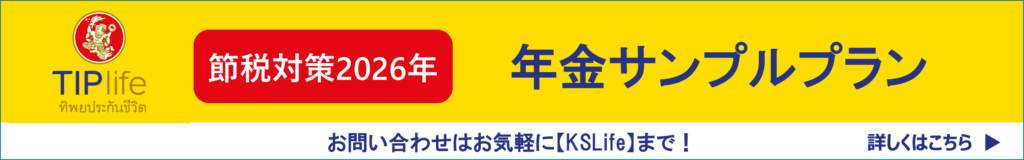 KSライフとは KSライフとは タイ、バンコクを拠点にタイ国内保険会社の保険や年金商品をタイに在住のお客様向けに提供しております。 タイで販売されている保険や年金商品は、日本のものに比べ利回りがよく、タイで働いている方は、生命保険や年金に加入する事で所得税の控除を受ける事が出来る為、節税にも大変有効です。 弊社では、各保険会社の商品をご相談頂いたお客様のニーズに合わせて説明し保険や年金加入のお手伝いをいたします。また、ご加入後も日本語でお客様のご要望や商品内容の確認などアフタフォローも行っております。
